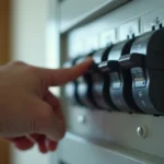 Avant toute manipulation, assurez-vous que le disjoncteur général est bien sur « OFF ». Le diagnostic se fait ensuite au niveau du tableau électrique, en suivant une procédure stricte pour éviter tout risque. L’utilisation d’outils de mesure par un professionnel, comme illustré ci-dessous, permet un diagnostic précis et sans danger.