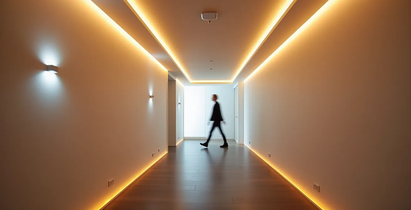 - La clé d’un éclairage automatique efficace est le zonage intelligent : réservez les détecteurs aux zones de passage (couloir, WC, garage) et évitez les zones de vie (salon, chambre).