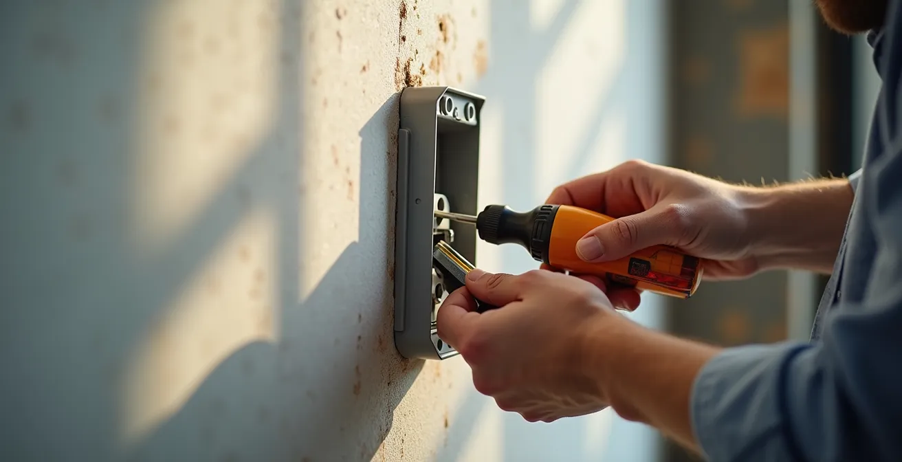 Ce tableau met en lumière un principe fondamental : la percussion du perforateur est un allié dans le béton dense, mais un ennemi dans la brique creuse ou le béton cellulaire, qu’elle risque de faire éclater. De même, le scellement au plâtre ou au mortier, bien que plus long, offre une solidité inégalée dans les matériaux maçonnés. C’est la technique reine pour les boîtiers en maçonnerie, garantissant une fusion parfaite entre le boîtier et le mur.