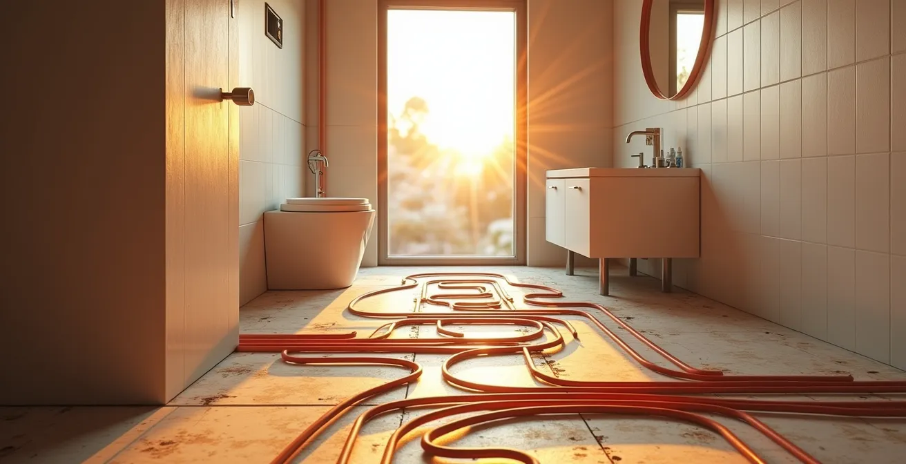 L’idée d’entrer dans sa salle de bain et de sentir la douce chaleur d’un sol tiède sous ses pieds est l’incarnation même du confort moderne. Le plancher chauffant électrique promet cette expérience luxueuse, mais derrière cette image se cache une réalité technique exigeante. Beaucoup se lancent dans ce projet en se focalisant sur le choix du matériel, pensant que la qualité d’une marque suffit à garantir la réussite. C’est une erreur fondamentale. Le véritable enjeu n’est pas là. Une installation peut rapidement virer au cauchemar : une panne irréparable une fois le carrelage posé, ou une facture d’électricité qui double, transformant le rêve en gouffre financier.
